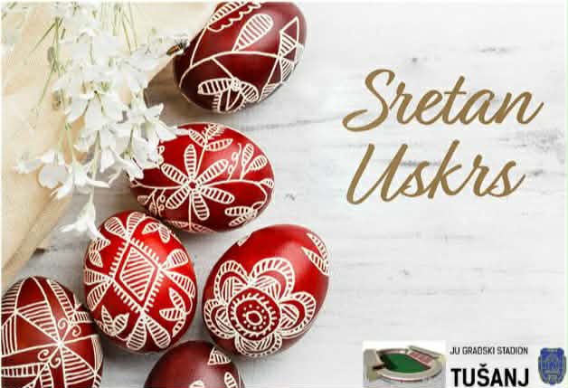 Uposlenici Javne ustanove „Gradski stadion Tušanj“ svim katolicima žele sretan Uskrs, uz iskrene želje da Uskrs provedu u radosti i krugu svoje porodice i prijatelja .